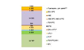 Рисунок. Число годовых курсов отдельных антиретровирусных препаратов, планируемых к закупке в 2020 году. Приведены «третьи» препараты в схемах (EFV, NVP, LPV/r, DRV+RTV, DTG) и «препараты основы» (TDF/FTC, ABC/3TC, ABC, ZDV/3TC).